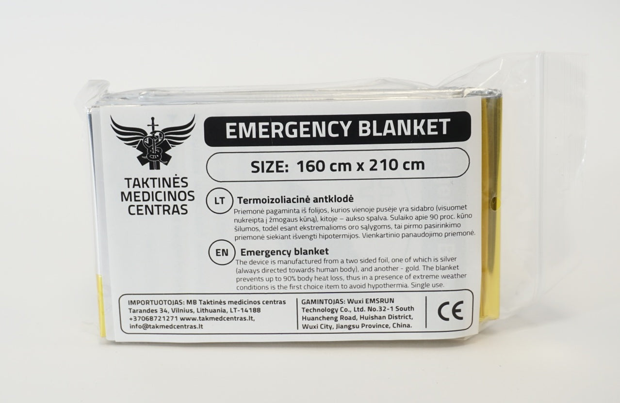 Ši pirmajai pagalbai skirta folijos termoizoliacinė antklodė vienoje pusėje yra sidabro, kitoje – žalios spalvos, kas puikiai tinka taktinėje aplinkoje.